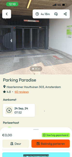 - De teller gaat automatisch lopen wanneer je bent binnengereden met "Parkeerplek inrijden" en je nog geparkeerd staat als je abonnement is afgelopen.