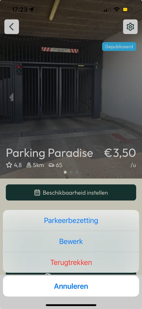 Je kan ook de configuratie (bijvoorbeeld in- en uitrij instructies), opties, omschrijving en openingstijden aanpassen.